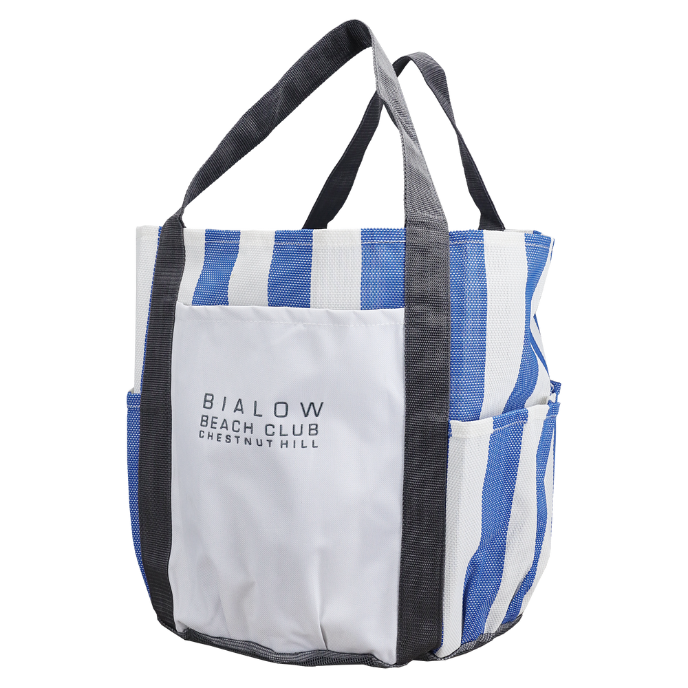 Our Archipelago Beach Bag is one of our largest beach bags, measuring 24" W x 15" H with a 13" Gusset. This bag is large enough to hold all of your beach and pool essentials, including matching beach towels! This bag also has a small, zip-up pocket inside to keep your small, personal items safe. The bottom of the bag is made of a thick mesh, that will allow water and sand to easily be removed from the bag. The Archipelago Beach Bag also features 5 exterior pockets for extra storage.