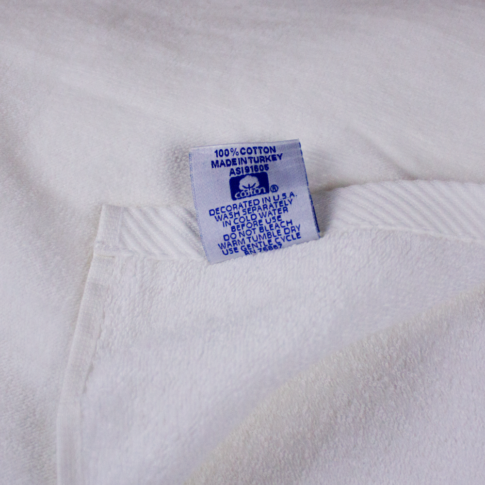 Our Catalina signature series promotional beach towels are mid-weight quality products that are manufactured in India. These brilliant white bayside towels include a favorable whitening technique that is created through weaving and shearing processes. Your corporate logos, company names or product information will display in a crisp manner on top of our elegant ultra-white Catalina signature series sun-and-swim towels.