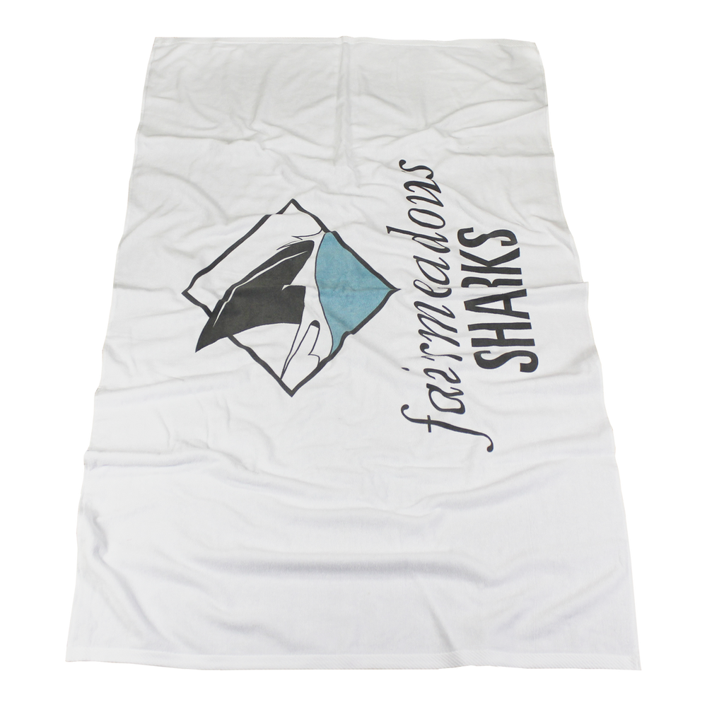 Our Medium Weight USA White Beach Towel is a 100% cotton towel manufactured and decorated in the US. Each towel measures 35" W x 60" L.
