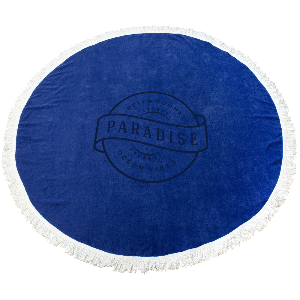 Our Fringe Round Beach Towels are made from 100% cotton velour, with hand-knotted fringes around the hem. These lavish towels measure approximately 60" round and have an expansive 26" x 48" imprint area for you to customize. Bring your logo or artwork to life on an oversized, unique beach towel!