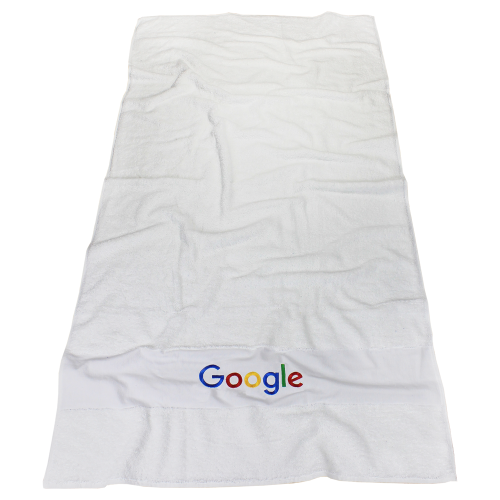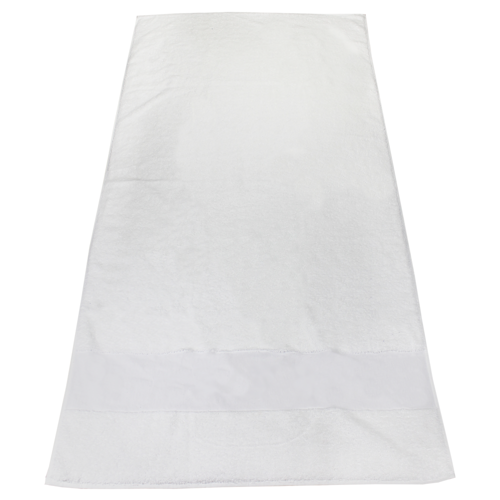 Our High Tide White Beach Towel is our thickest, heaviest towel, weighing in at 34 lbs./dozen, and measures an impressive 35" W x 66" L. Each towel has a 6" woven band to highlight your imprinted or embroidered logo.