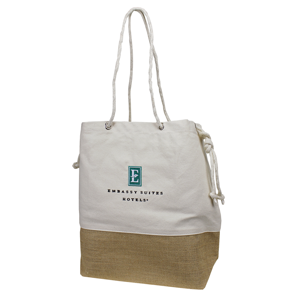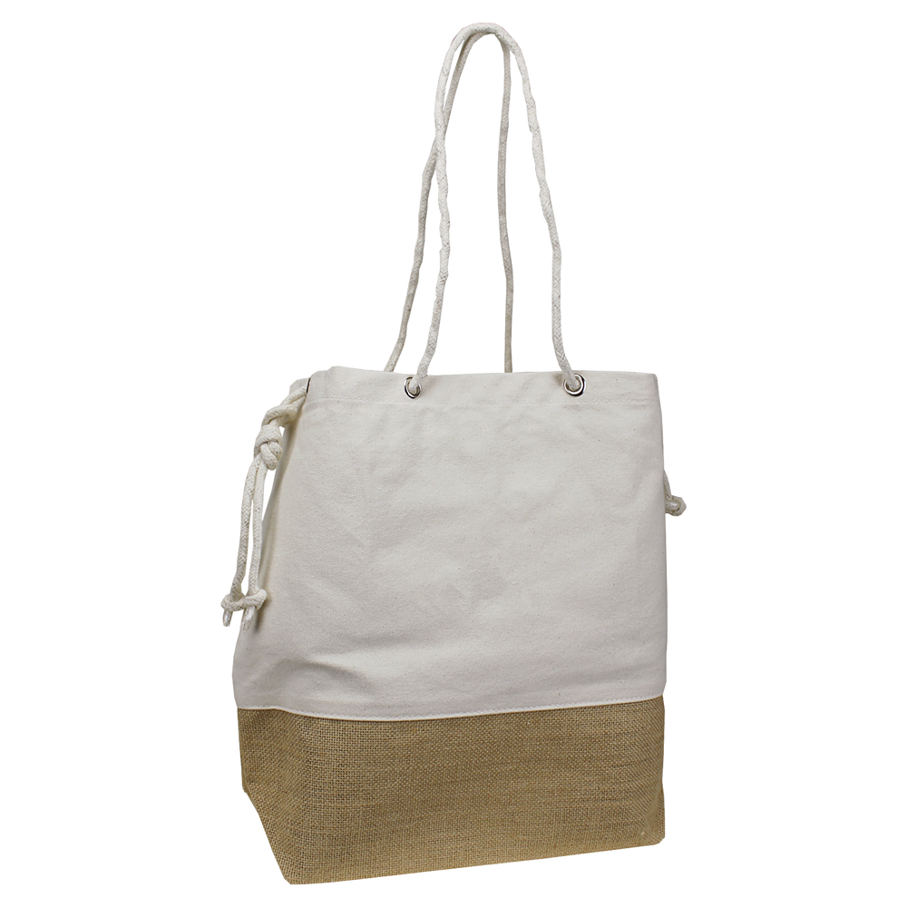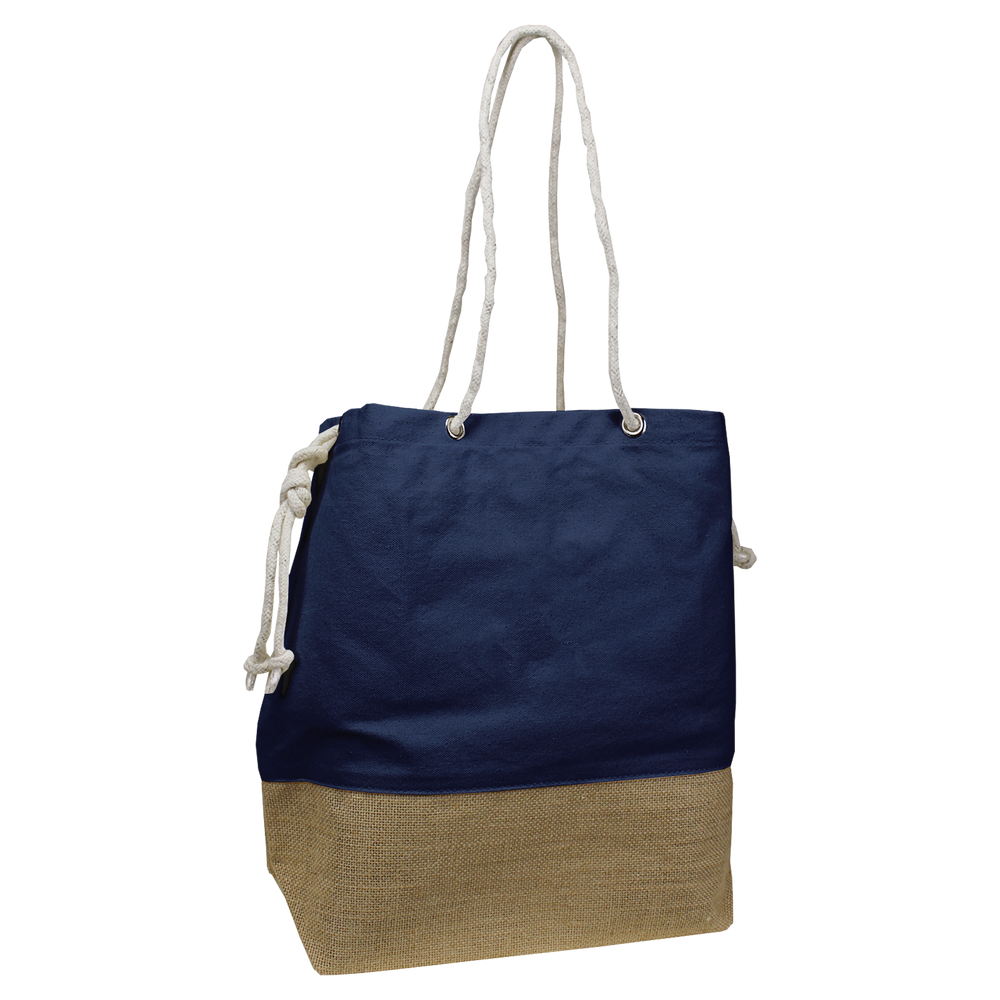 Our Islay Beach Bag is a durable bag with a classic look. The bag is made of a thick canvas, and features a stylish, jute weave on the bottom, and adjustable, rope handles. Measuring at 17" W x 14" H with a 6" gusset, this bag is perfect for carrying all of your beach and pool essentials. There is also an internal pocket to keep smaller items safe. The Islay Beach Bag can be customized with your logo in the form of an embroidery, screenprint, or laser patch.