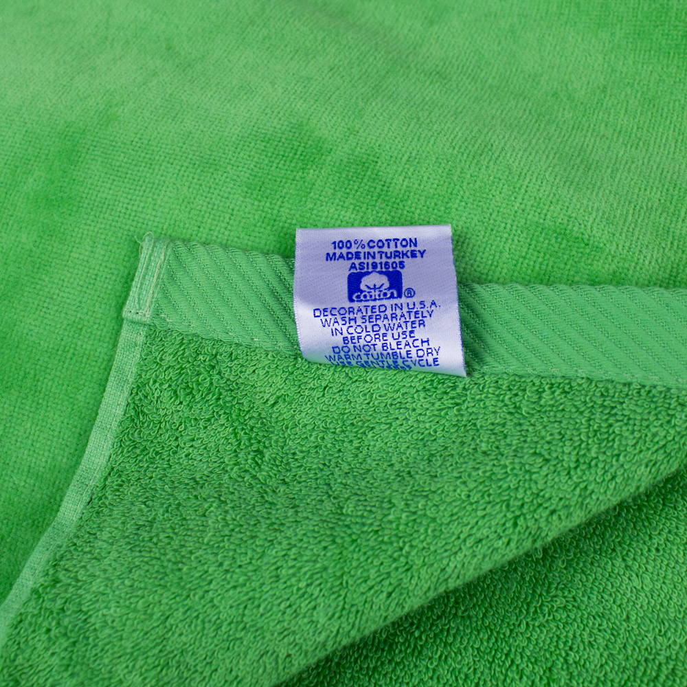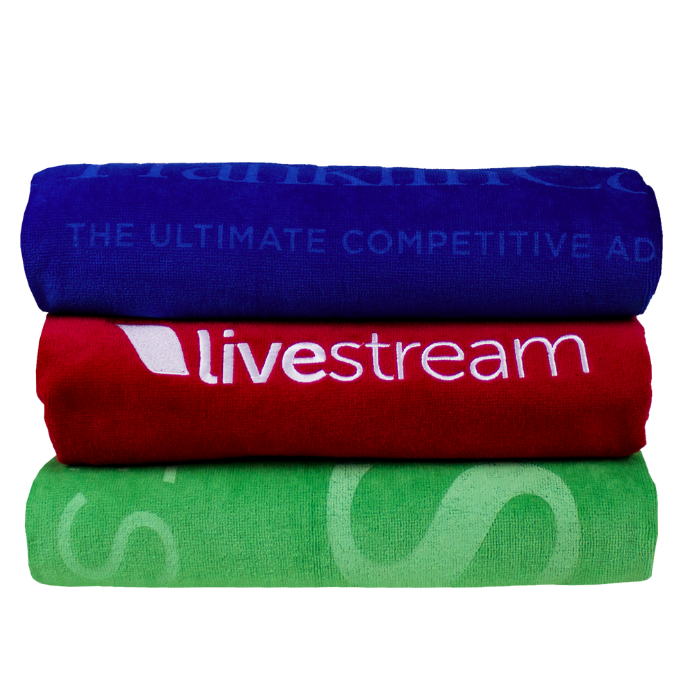 Nautica towels come in popular colors: black, fuchsia, lemon yellow, lime green, navy blue, royal blue, red, tangerine orange and turquoise. These eye-catching colors display promotional text, corporate logos and product descriptions in an awesome way. Our Nautica beach towels can be embroidered or printed in ways that produce quality same-color ads, black or white scripts and/or colorful full-scale advertising graphics.