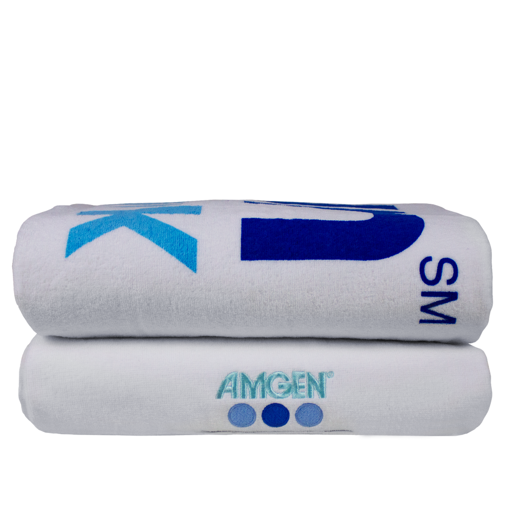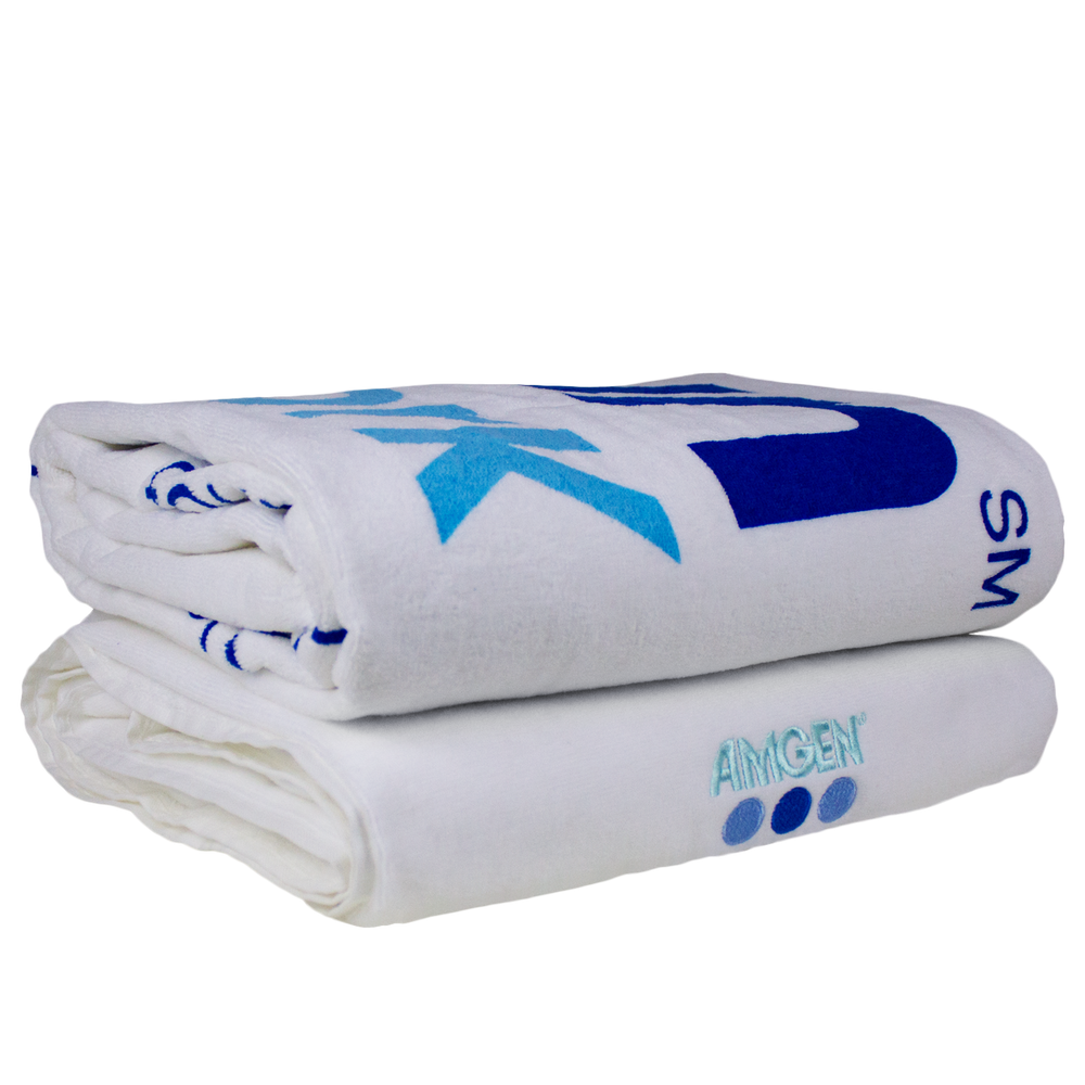 Our Odyssee beach towels are among the most elegant beach towels available on the marketplace today. This luxurious white towel is created with a dense cotton fiber count per square inch, and these fibers come from the famed Turkish cotton plants. Turkish cotton plants grow long, slim cotton fibers that enhance the user experiences. 100% Turkish cotton towels are very soft, absorbent and easy to care for throughout their long life. The Odyssee beach towels are upper-quality products that hold the ability to display all types of embroidered or imprinted messages in an excellent manner. Like our Skysail towels, the Odyssee white beach towels have the double-sheared finish that enhances their brightness through the addition of a slight sheen to the fabric. This type of all purpose oversize white towel is appropriate for indoor or outdoor use, for resale campaigns, and for use as promo gifts. The Odyssee white beach towel measures 40-inches across and a full 70-inches long and weighs 500 GSM individually or 24 lbs/dozen. This extra-large beach towel can be embroidered or imprinted with single or multiple colors. White-on-white elegant advertising options are also available for very reasonable prices. Holden carries a complete line-up of beach towels and offers all popular printing techniques. Contact us to discuss your promotional needs.