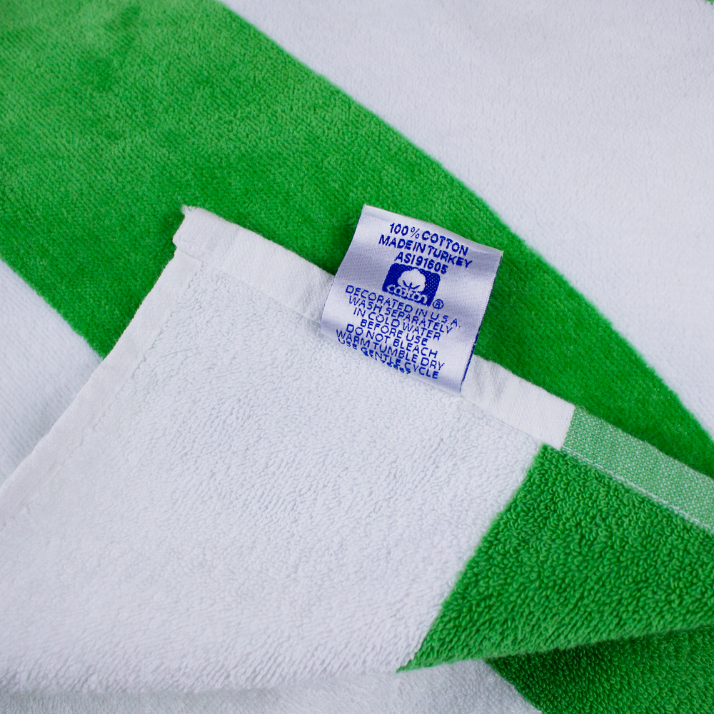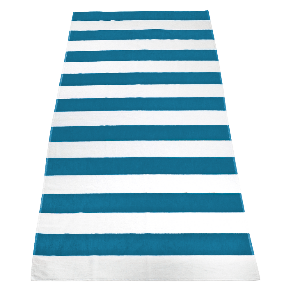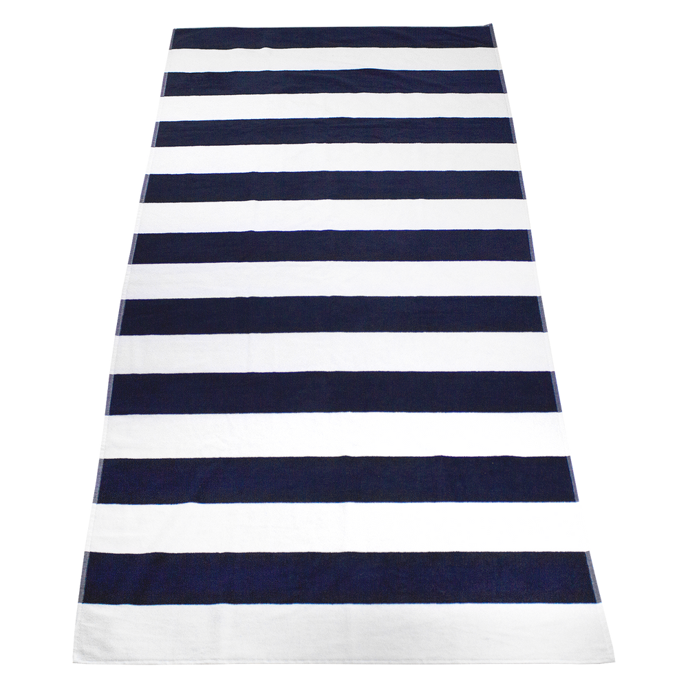 Santa Maria beach towels measure a large 40-inches across and 80-inches long. These indoor/outdoor oversized towels include classy four-inch-wide stripes and the double processing that creates a velvety soft finish that lasts indefinitely. Quality Turkish cotton towels that are graded at heavyweight like our Santa Maria examples are appropriate to use as executive gifts, and for all promotional projects with user satisfaction goals.