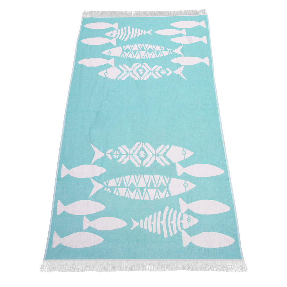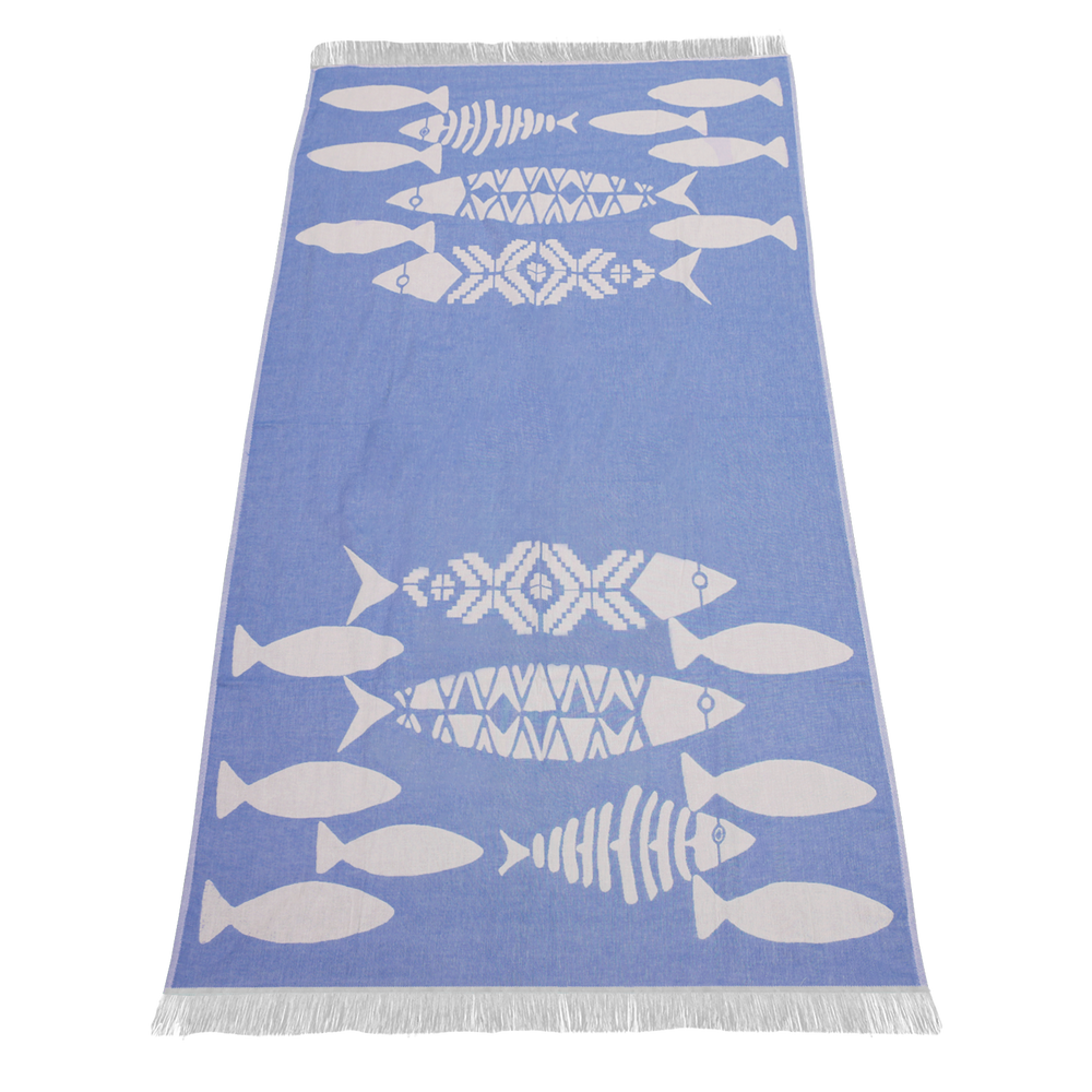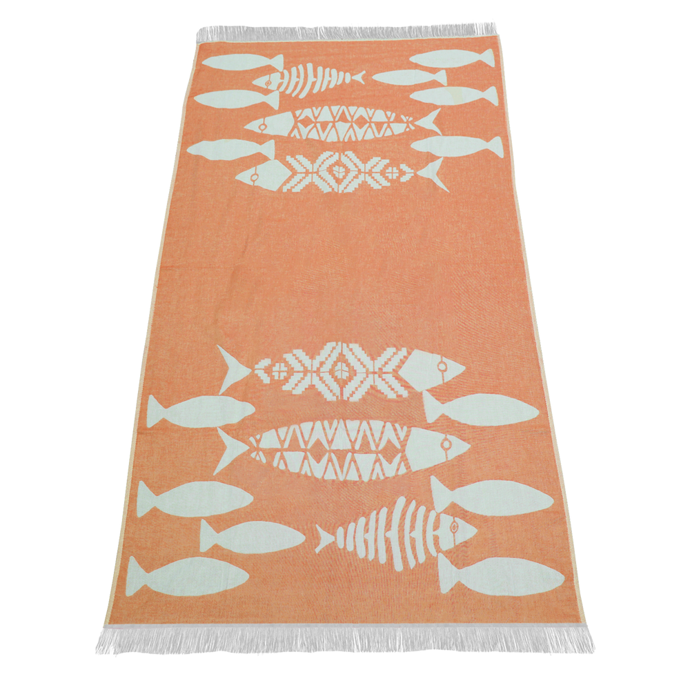 Showcase your logo on our elegant tropical fish design towels. These double-sided jacquard peshtemal towels, made from 100% sand-free cotton, offer a linen-like feel and quick-drying capabilities. Each towel measures 35" x 69", providing ample coverage and comfort. Plus, with every towel purchased, we donate a percentage to Coral Vita, supporting a healthier planet and oceans. Choose our stylish towels to make a positive impact today!