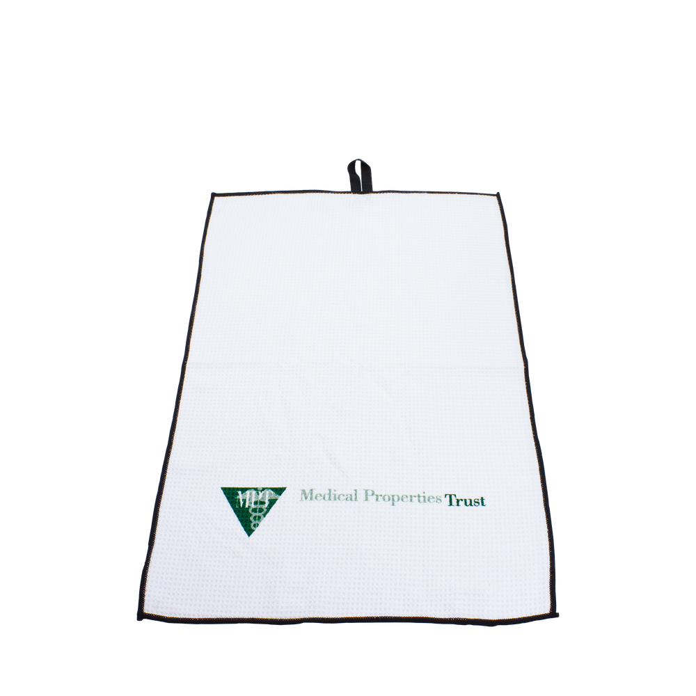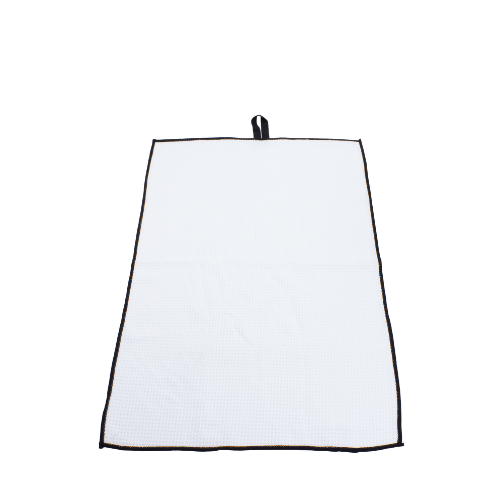 This popular golf towel is highly absorbent due to the microfiber waffle weave. Link golf towels also offer a sleek black border to better accent your brand and a twill strap for easy hanging.